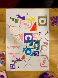 Participants exploring "Accounts and Coincidences" design various patterns and create compositions inspired by the exhibition. They then prepare textured printing templates of the patterns they created using different materials such as cardboard, foam, and string. Subsequently, the prepared templates are printed onto papers passed around among the participants in various shapes, resulting in as many collective artworks as there are participants. Hesaplar ve Tesadüfler’i gezen katılımcılar, sergiden aldıkları ilhamla çeşitli desenler tasarlayıp bu desenlerle örüntüler yaratıyor. Katılımcılar daha sonra mukavva, eva, ip gibi farklı malzemeler kullanarak yarattıkları örüntülerin dokulu baskı şablonlarını hazırlıyor. Ardından hazırlanan şablonlar katılımcılar arasında elden ele geçen kağıtlar üzerine farklı şekillerde basılarak katılımcı sayısı kadar kolektif yapıt üretiliyor.