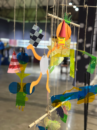 In this workshop, where we placed dialogue at the center as a playful tool and a means of collective creation, we designed a kinetic balance structure inspired by Calder and Munari. This structure, inherently dynamic and playful by nature, was composed of parts we created ourselves. Each participant instructed someone else to produce their designed piece using only verbal directions, while also crafting a piece designed by another. Guided by simple rules and constraints, we collectively established balance and completed the structure at the end of the game. Diyaloğu bir oyun aracı ve kolektif üretimin merkezine koyduğumuz bu atölyede, Calder ve Munari’den ilham alarak hareketli bir denge strüktürü oluşturduk. Doğası gereği değişken ve oyuncu bir yapıya sahip olan bu strüktürün parçalarını ise kendimiz tasarladık. Her katılımcı, tasarladığı parçayı sadece sözlü yönlendirmelerle bir başkasına ürettirdi ve aynı şekilde bir başkasının tasarımını üretti. Basit kurallar ve yasaklar ile şekillenen bu oyunun sonunda, hep birlikte dengeyi kurarak strüktürü tamamladık.